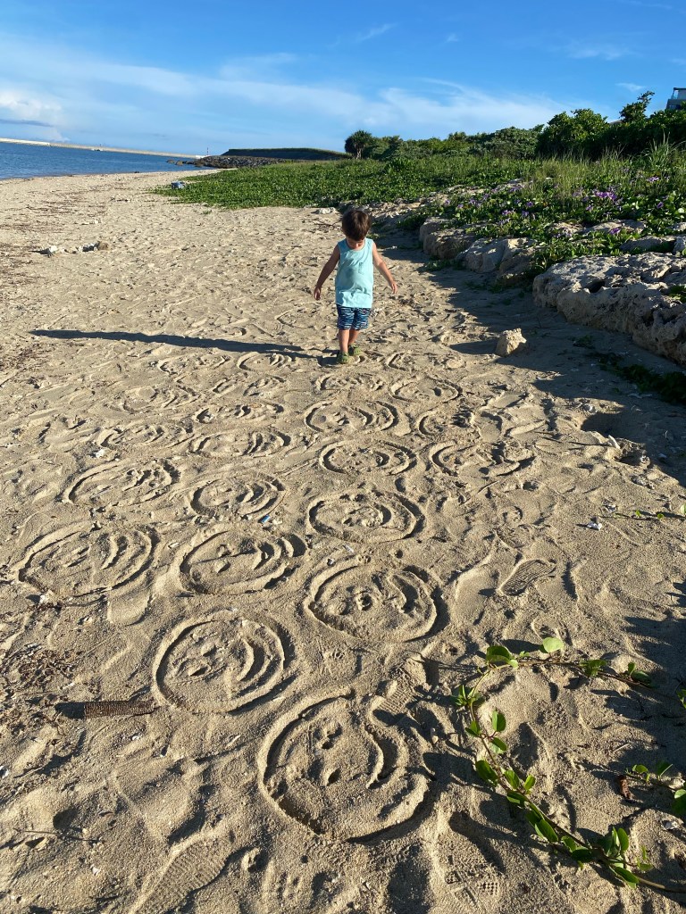 Just South of the Naha airport is this gem of an island. With a circumference of only 1.5 kilometers (I don’t know what the conversion for that is, I just wrote what google provided me with. You can do the math), it’s easy to explore the whole island! We made the stop after dropping daddy off for an early morning flight. Because it’s so close to the airport, you can see the planes take off while sitting on the beach which was a lot of fun for our oldest.
