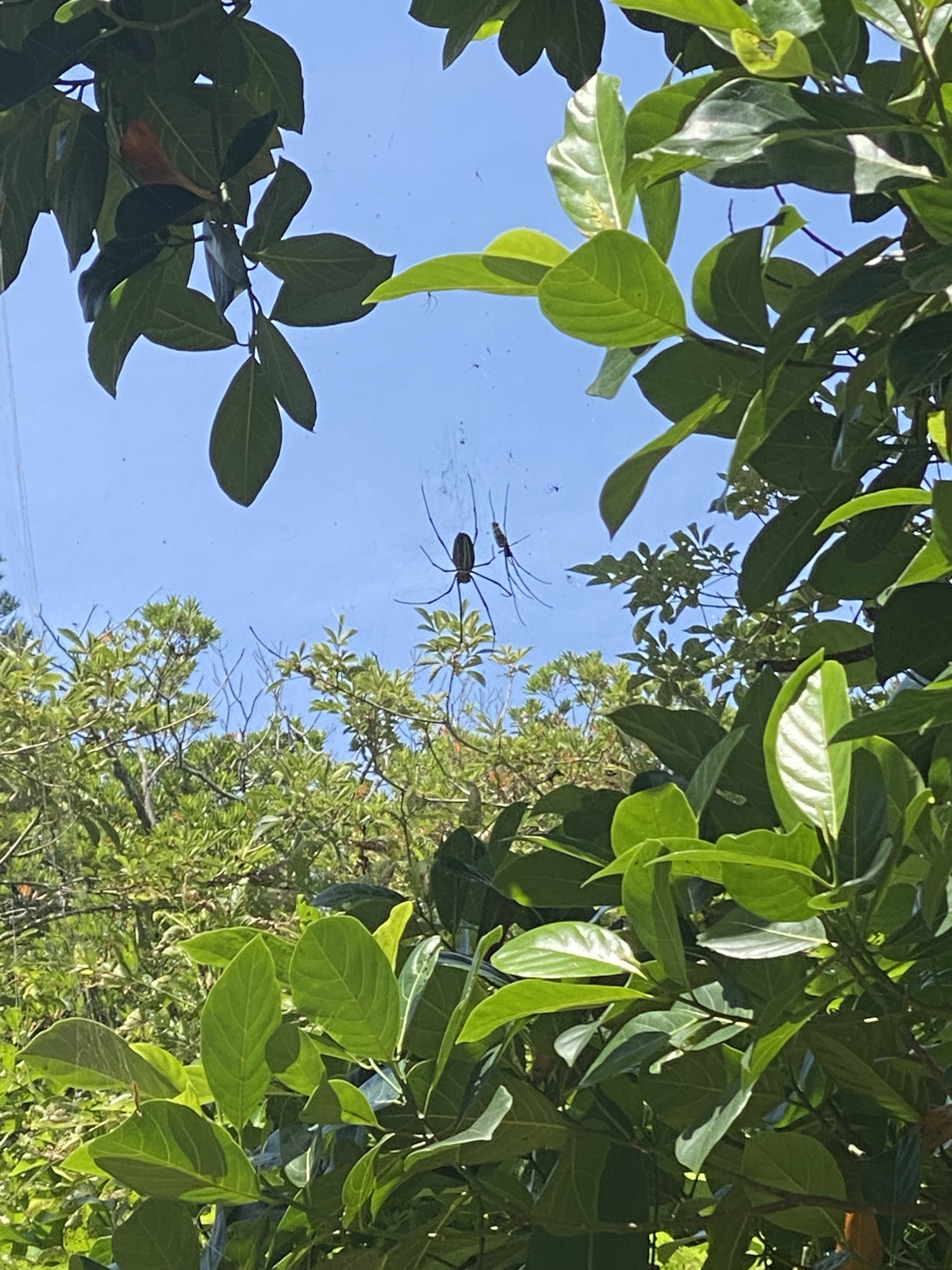 There were bathrooms at the bottom (that were also in a cool tree-like structure) but we didn’t see any vending machines. There weren’t very many bugs on the walk up to the tower, but I made us take the loop back through the woods before going back to the car which was maybe a mistake. Waylon didn’t really want to walk it, and the path was littered with spiders. I saw the biggest Golden Orb Weaver I had seen yet and almost cried but I’m pretty sure I came out on the other side stronger…perhaps.