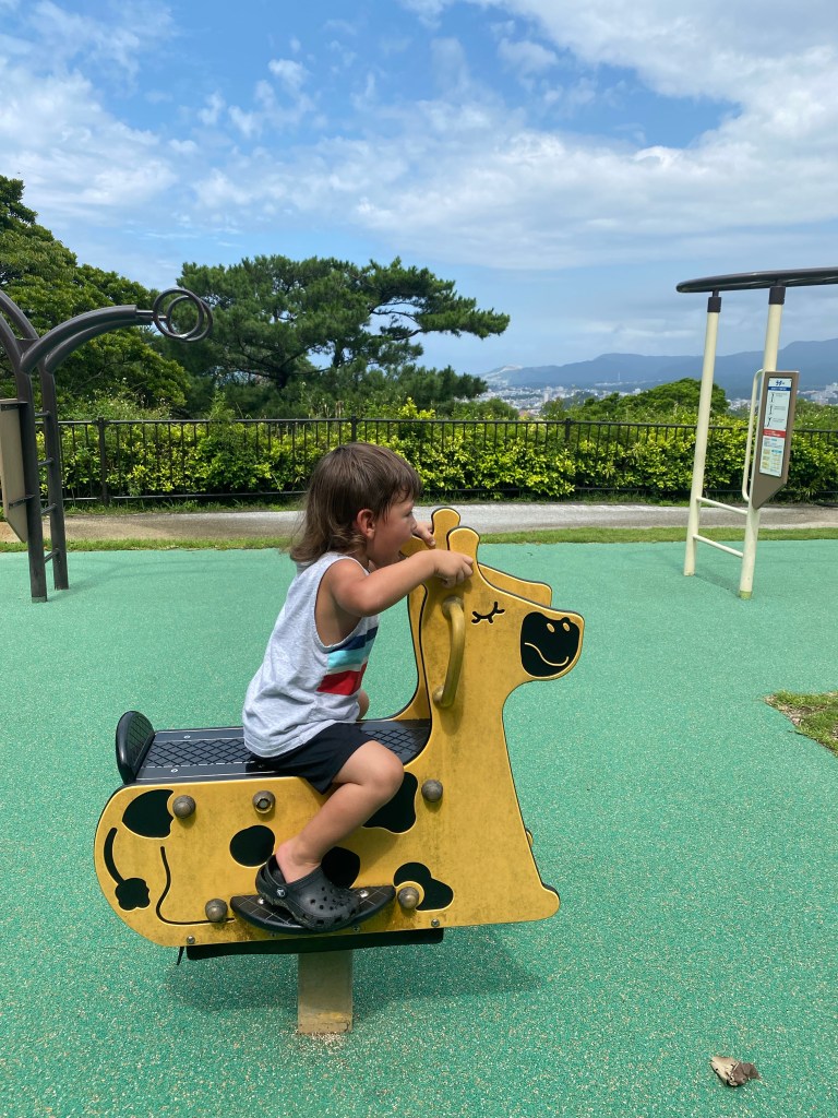 The playground had a couple of different play areas with structures for different age levels. There was also a little zip line, a big roll-down slide, bathrooms, and (thank god) a vending machine with juice. We had stopped by another vending machine that didn’t have anything kid-friendly (besides water but I always have water on me), so Waylon was a little unhinged. There were also really pretty views of the city from the playground which was a plus!